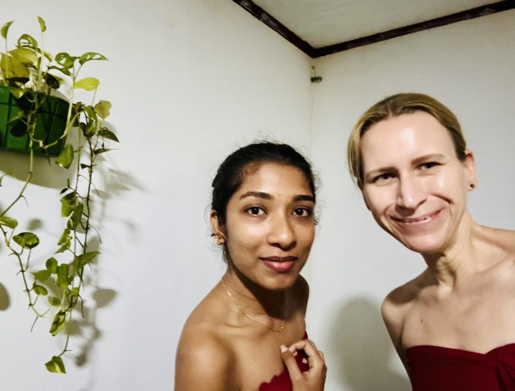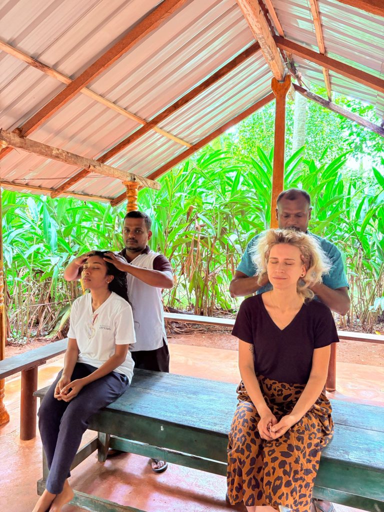Valentina, Pubuduni und ich gönnten uns noch eine kurze ayurvedische Kopfmassage.