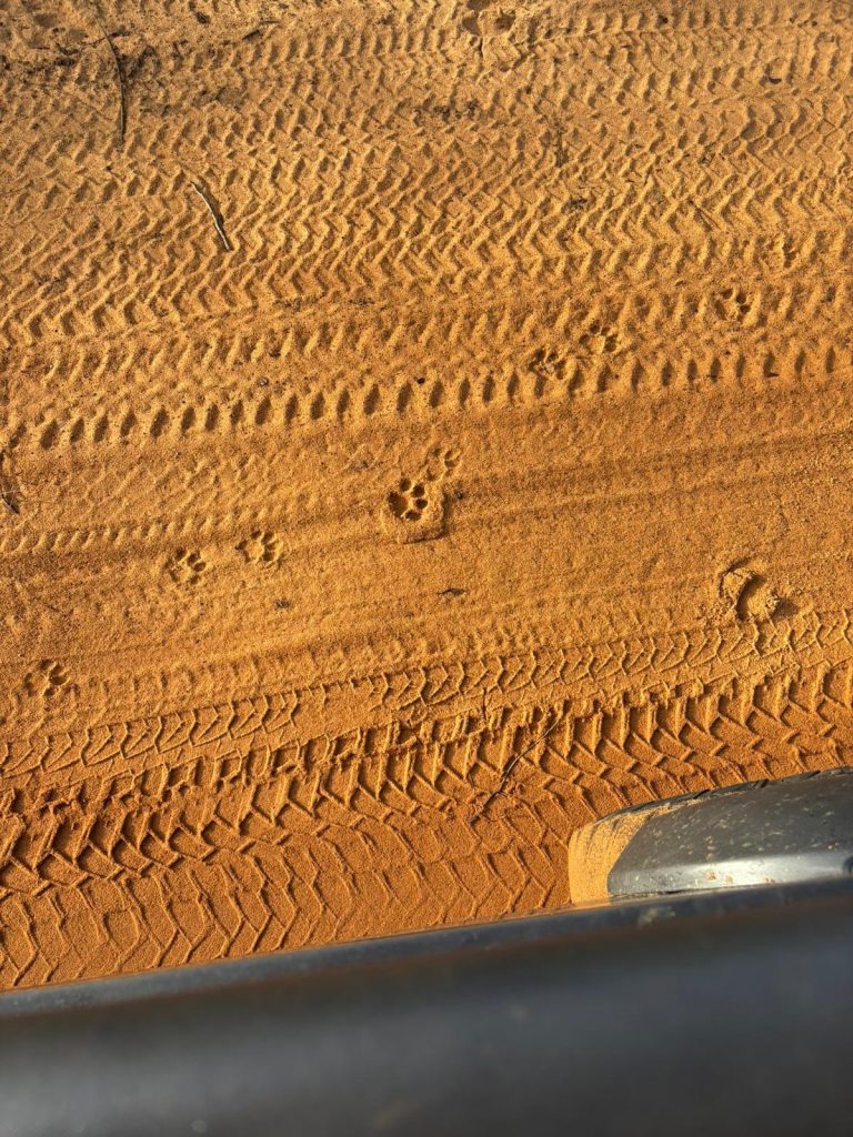 Einen Leoparden konnten wir nicht entdecken, das soll wohl auch äußerst selten sein. Uns begeisterten schon die frischen Fußabdrücke im Sand.