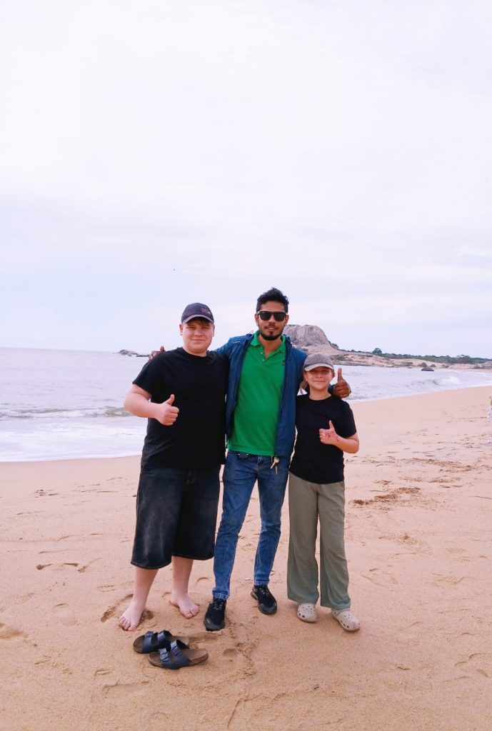 Am Nachmittag nahmen uns Nirosh und Maama noch mit in ein kleines Local Restaurant und anschließend an einen Strand außerhalb des Parks. Badesachen hatten wir nicht dabei, also blieb es beim Barfußgang durchs klare Wasser. Es war ein sehr guter Vorgeschmack.