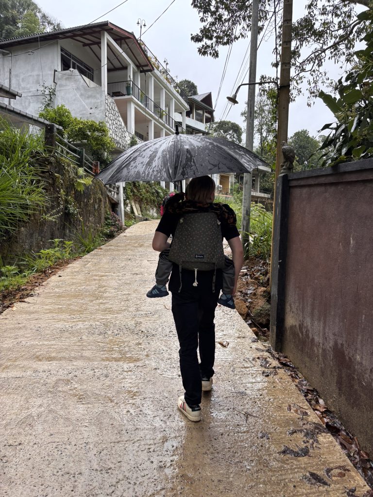 Florin transportieren wir hier übrigens fast ausschließlich in der Rückentrage, unserer Didymos DidiGo. Mit Kinderwagen ist in Ella kein Durchkommen. Die Straßen sind eng, steil, unübersichtlich, der Verkehr chaotisch und teilweise wirklich gefährlich. Außerdem gibt es in Sri Lanka nur selten Fußwege.