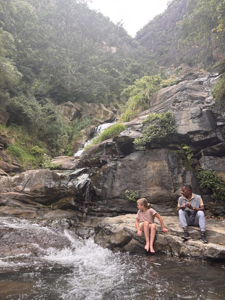 Am frühen Nachmittag holten uns Nirosh und Onkel ab. Ziel: ein Wasserfall in der Nähe von Ella. Sehr touristisch, sehr voll aber trotzdem schön. Vielleicht wegen der frechen Affen, die versuchten, Snacks zu klauen. Vielleicht wegen der guten Stimmung. Vielleicht einfach, weil es sich nach Abenteuer anfühlte.