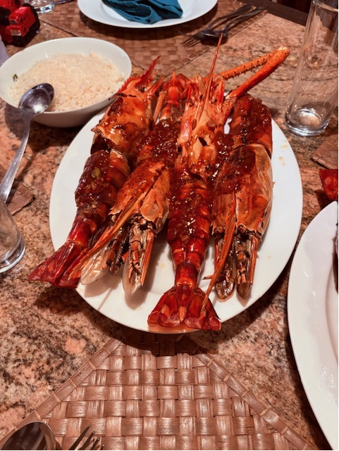 Am Abend setzte die Küchencrew noch einen drauf: riesige Prawns, dazu Meeresfrüchte-Reis und ein fruchtiges Ananas-Curry. Alles frisch, alles unglaublich aromatisch. Einer dieser Momente, in denen man nach dem ersten Bissen einfach nur denkt: Das ist perfekt.